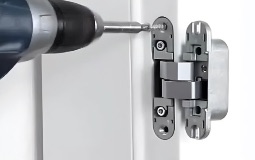 Закрепляем короб в дверном проеме к стене при помощи крепежа (учитываем материал стены, обычно это шурупы, анкерные болты) через вырезы под петли и ответную планку. Крепим монтажные пластины.